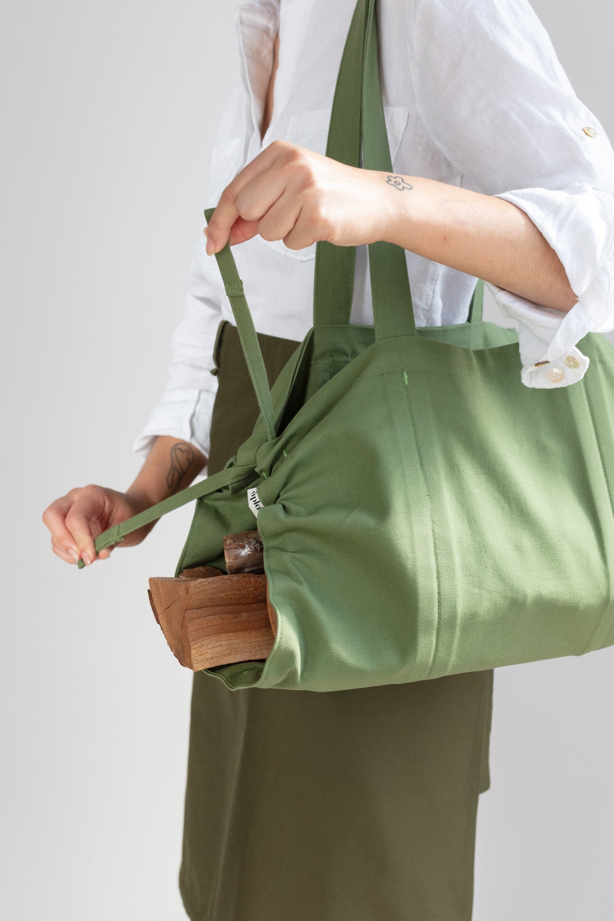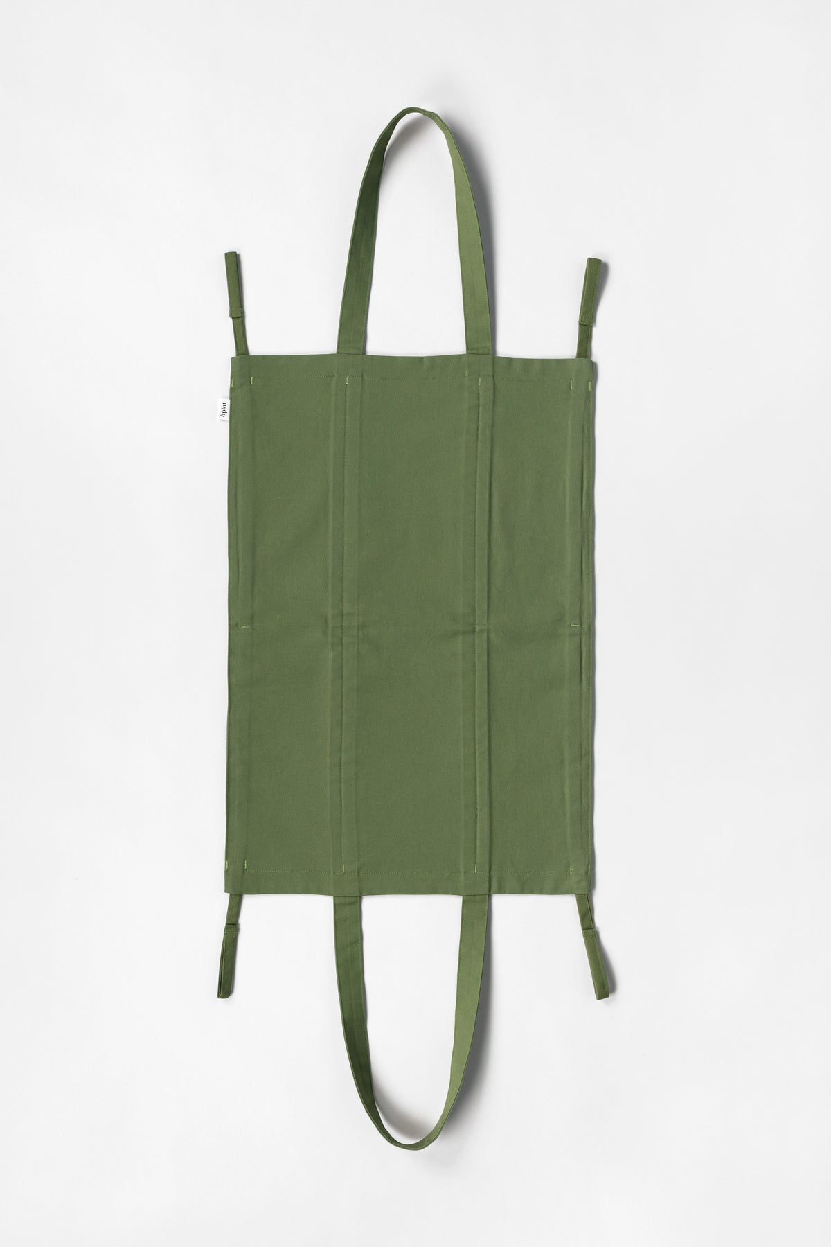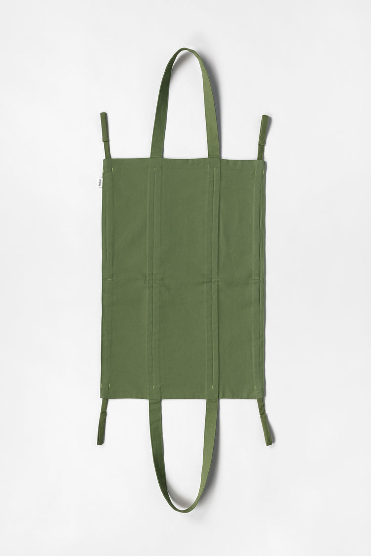100% certified-organic heavyweight cotton canvas duck produced using low-impact, environmentally friendly fabrication methods for a more sustainable fiber. The cotton canvas is food-safe, colored with low-impact dyeing methods, and uses zero hardware, plastic, or toxic elastics. Designed and made in San Francisco, California, with zero byproduct waste.