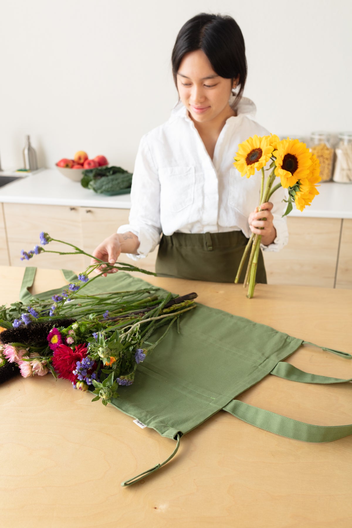 When you bring home flowers, this reusable … tote is a clever and sustainable substitute for cellophane or paper.