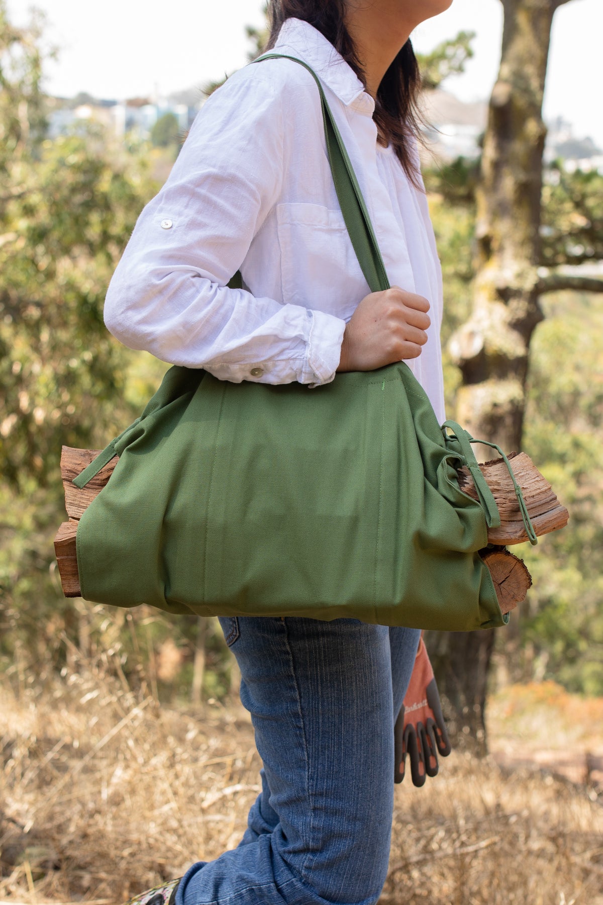 This versatile gathering sling is ideal for gardening, harvesting, and foraging. You can carry long stem garden trimmings and veggies hands-free, plus it's sturdy enough to haul wood logs. Cinch the drawstring ends to secure loose items and smaller bounty. It's crafted from super durable, double-layered heavy cotton canvas with sewn-in support straps, making it extra sturdy. Perfect for hauling the harvest from your home garden or taking on your next trip to the local farmers' market.